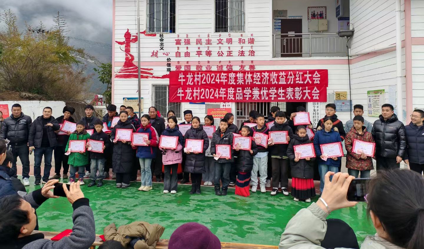 2025年1月,雷波县马颈子镇牛龙村为品学兼优学生发放奖学金。(受访者供图)