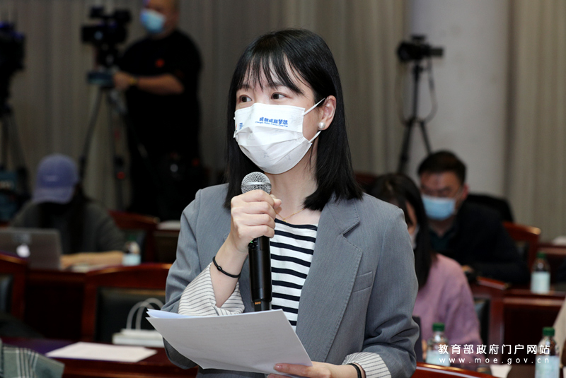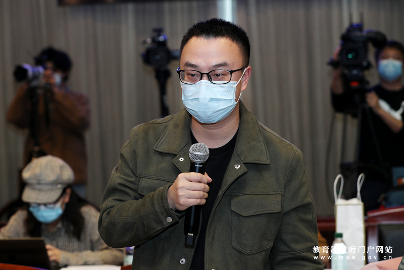红星新闻记者提问。(中国教育报记者 张劲松/摄)